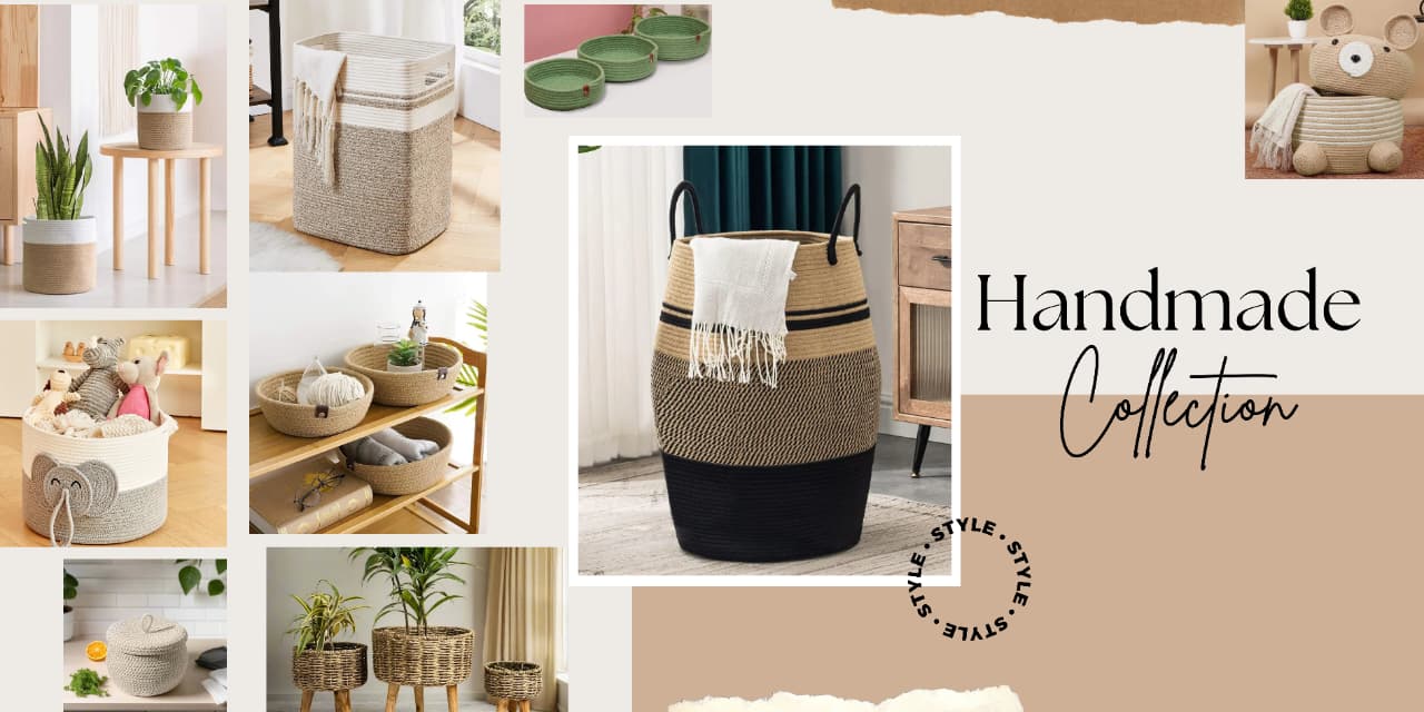Homestic Aesthetic Jute Cotton Ottoman for Sitting Stool for Living Room - Multiple Sizes