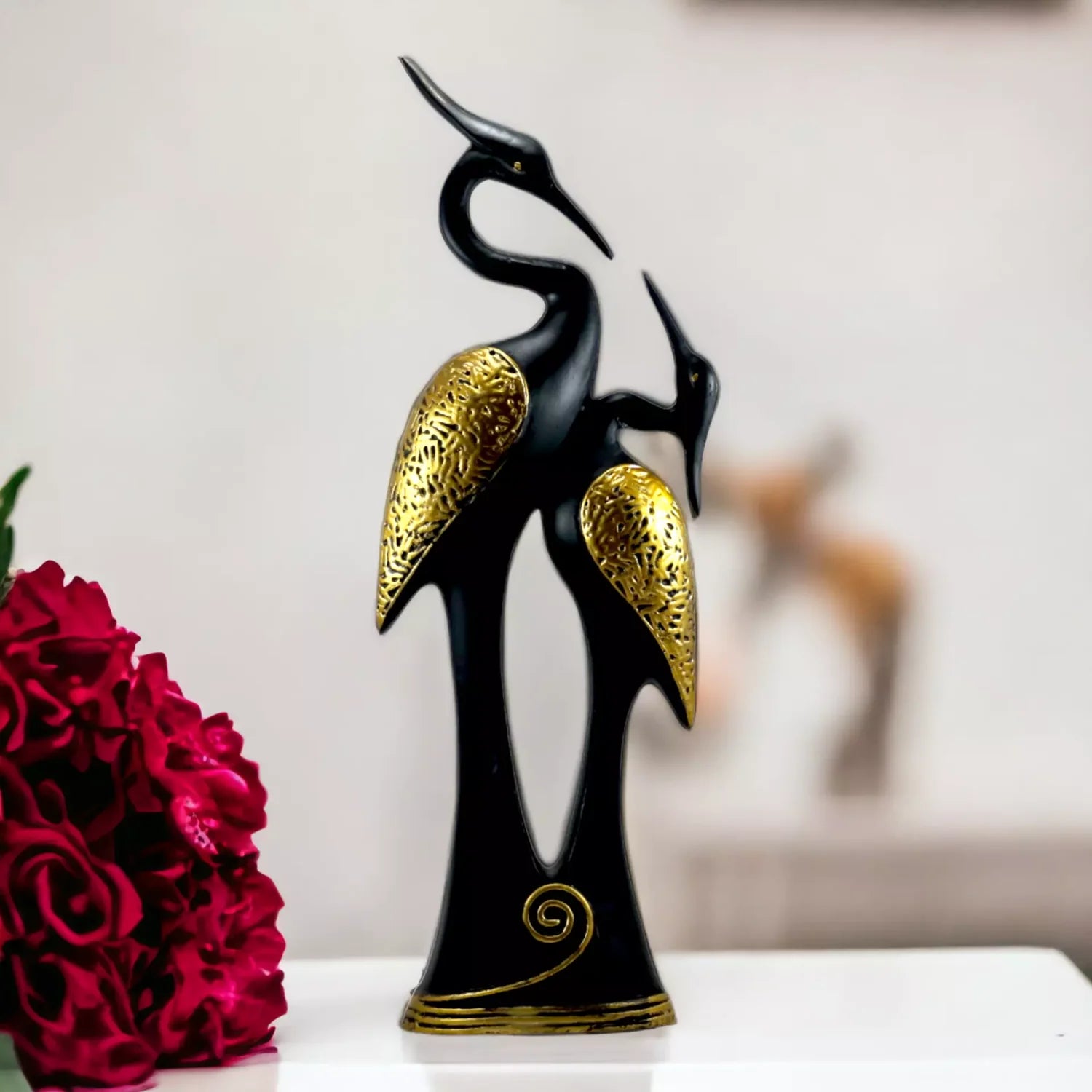 Immerse yourself in the enchanting allure of our Black Swan Couple resin handcrafted statue, a celebration of elegance, harmony, and the timeless beauty of bonded love. Meticulously designed with artistic finesse, this exquisite sculpture captures the grace of a pair of black swans, symbolizing love and commitment. The Black Swan Couple statue serves as a striking and meaningful decor accent, bringing an air of sophistication to any space. Its symbolic representation of a bonded pair adds a romantic touch to your home, making it an ideal centerpiece or accent piece for those who appreciate unique and thoughtful design. Crafted with intricate detail and artisanal craftsmanship, this decorative bird sculpture stands out as a testament to the beauty found in nature. Whether displayed in your living room, bedroom, or as part of a curated collection, our Black Swan Couple statue adds a touch of timeless elegance to your surroundings. Elevate your decor with the symbolic beauty of love embodied in this exquisite handmade swan masterpiece. Explore the artistry and grace of our Black Swan Couple resin handcrafted statue for a touch of sophistication and romance in your living space.