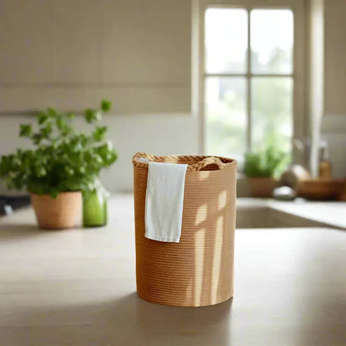 - Enhance your home with our white and brown Cotton Rope Basket - combining practicality with a contemporary aesthetic!