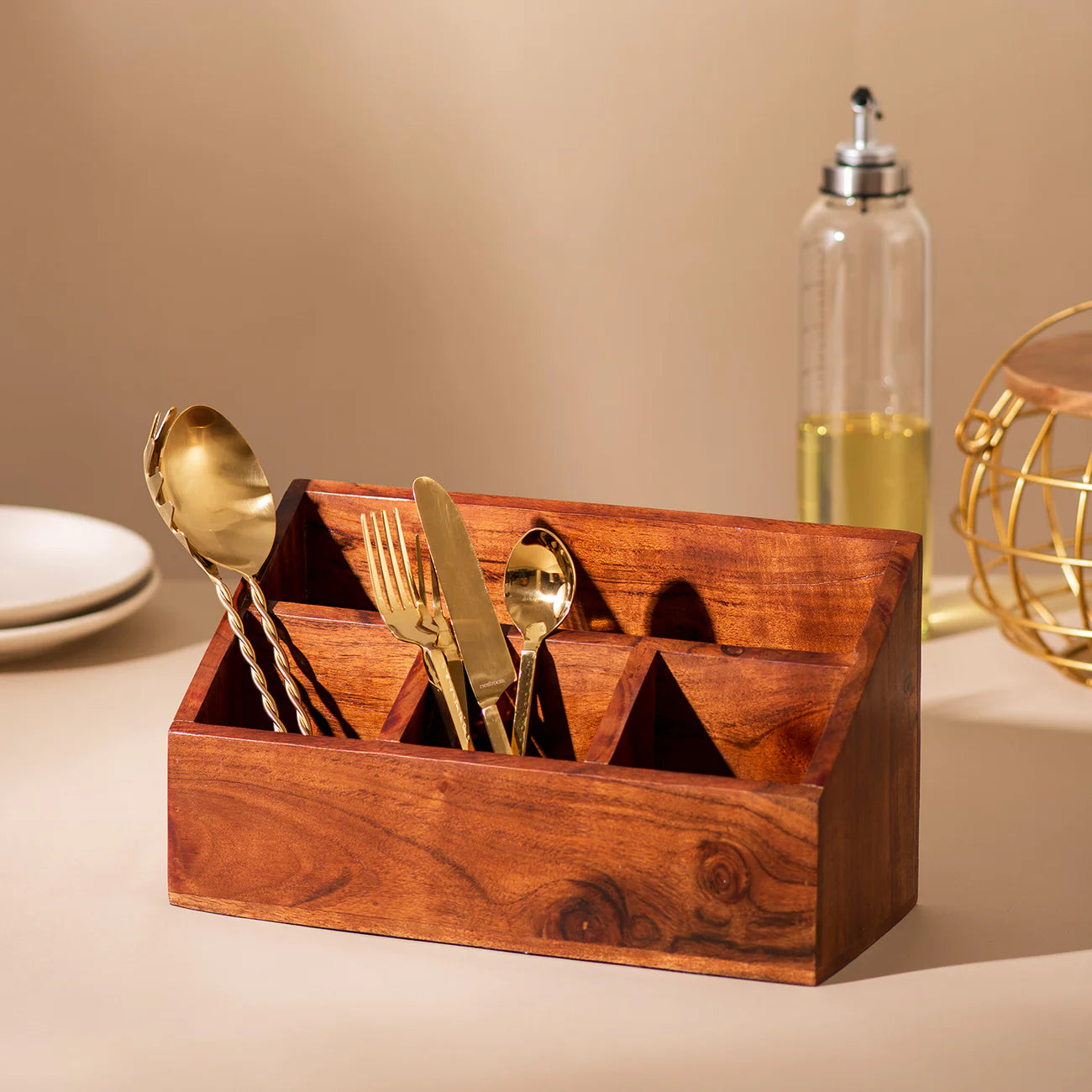 Add a touch of elegance and organization to your dining space with our handcrafted Wooden Cutlery Holder. Made from premium quality wood, this holder is designed to keep your spoons, forks, and knives neatly arranged while adding a rustic yet modern charm to your table. Its durable build ensures long-lasting use, while the smooth finish enhances the natural grain of the wood. Perfect for everyday meals or special gatherings, it helps keep your cutlery accessible and your dining area clutter-free. A versatile accessory, it can also be used to store straws, napkins, or kitchen tools with style.