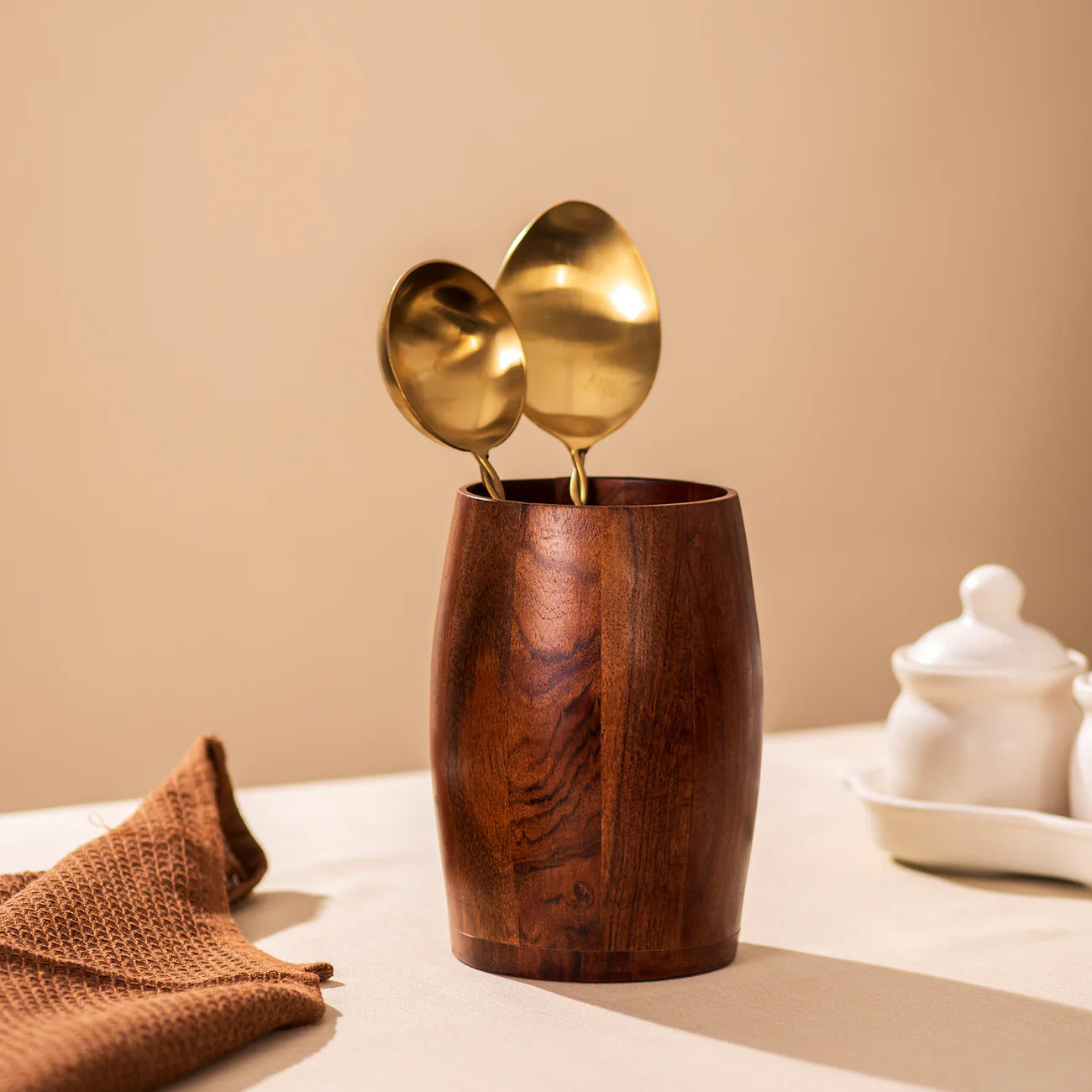 Add a touch of elegance and organization to your dining space with our handcrafted Wooden Cutlery Holder. Made from premium quality wood, this holder is designed to keep your spoons, forks, and knives neatly arranged while adding a rustic yet modern charm to your table. Its durable build ensures long-lasting use, while the smooth finish enhances the natural grain of the wood. Perfect for everyday meals or special gatherings, it helps keep your cutlery accessible and your dining area clutter-free. A versatile accessory, it can also be used to store straws, napkins, or kitchen tools with style.