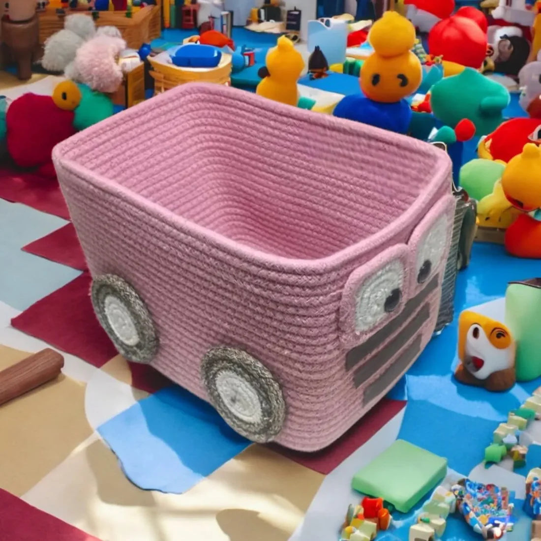 - ADORABLE CAR DESIGN: Featuring a fun pink car design with stitched wheels and embroidered eyes, this basket adds a playful and cheerful touch to any room.