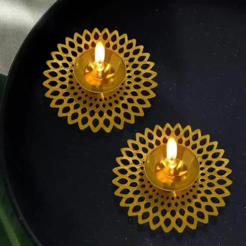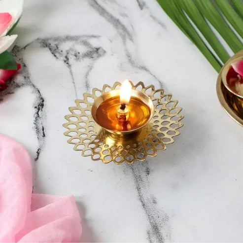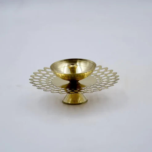 - Traditional diya stand for lighting cotton wicks with oil, essential for auspicious rituals