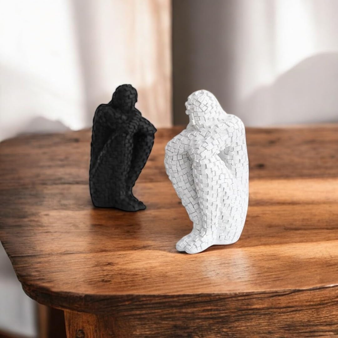 Bring a sense of calm reflection and modern artistry to your space with this pair of abstract mosaic figures. Each statue features a thoughtfully seated human form, designed with a captivating mosaic tile texture—one in a suave matte black, the other in a striking pure white finish. Perfect for office desks, bookshelves, or as a sophisticated centerpiece, these sculptures celebrate balance, introspection, and minimalist style.