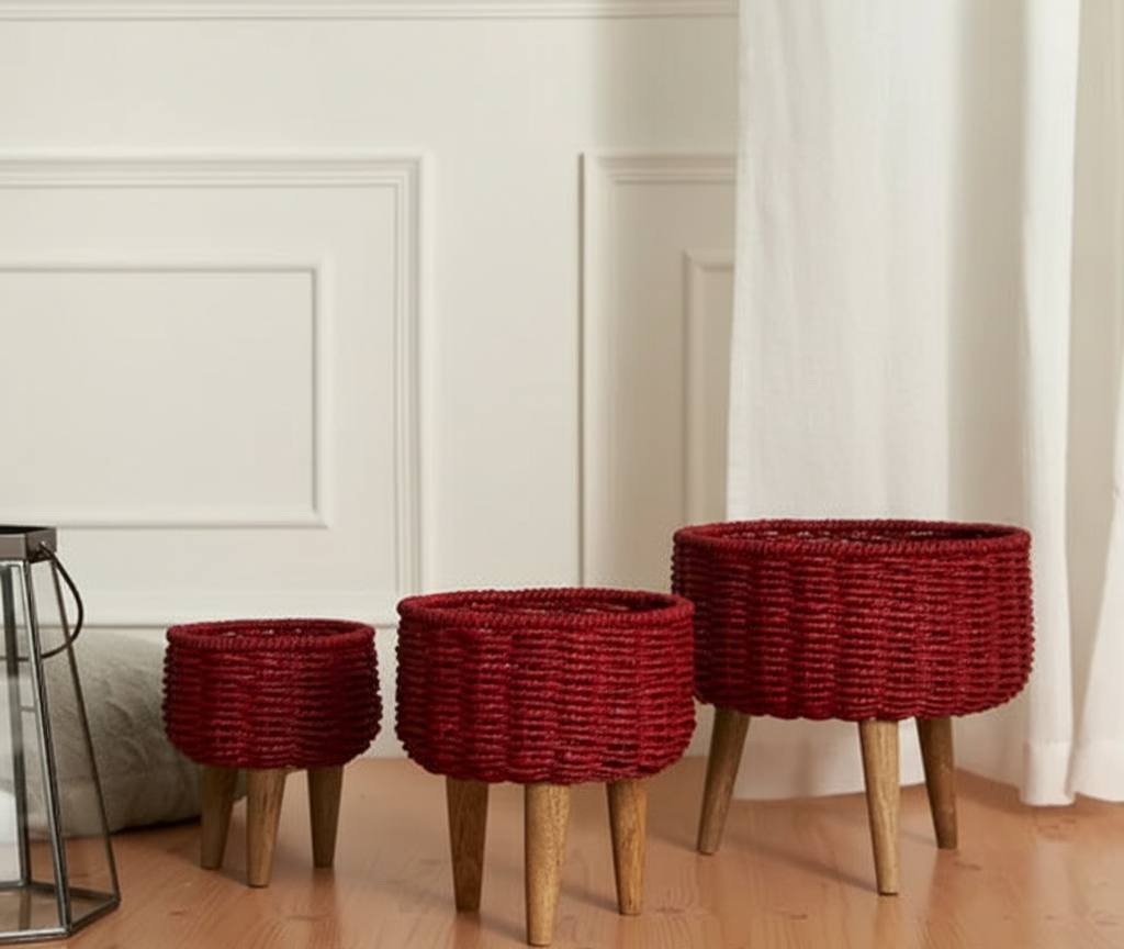 Eco-Friendly Black & Red Jute Planter - Set of 3