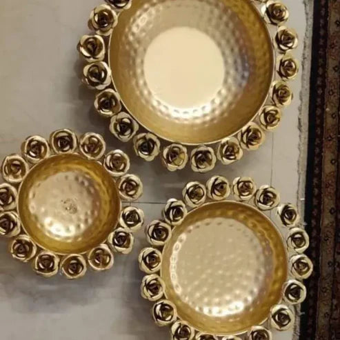 Infuse elegance into your festive space with our Golden Rose Urli Bowl, a stunning festive centerpiece designed to elevate your home decor. Crafted in a radiant antique gold finish, this metal decorative urli bowl is adorned with intricate rose motifs that create an ornate rim, making it ideal for traditional Diwali decorations. Perfect for filling with water and floating candles, fresh flower petals, or fragrant potpourri, it brings warmth and sophistication to any setting, whether you’re celebrating Diwali, styling a wedding venue, or surprising someone with a premium home decor gift.
