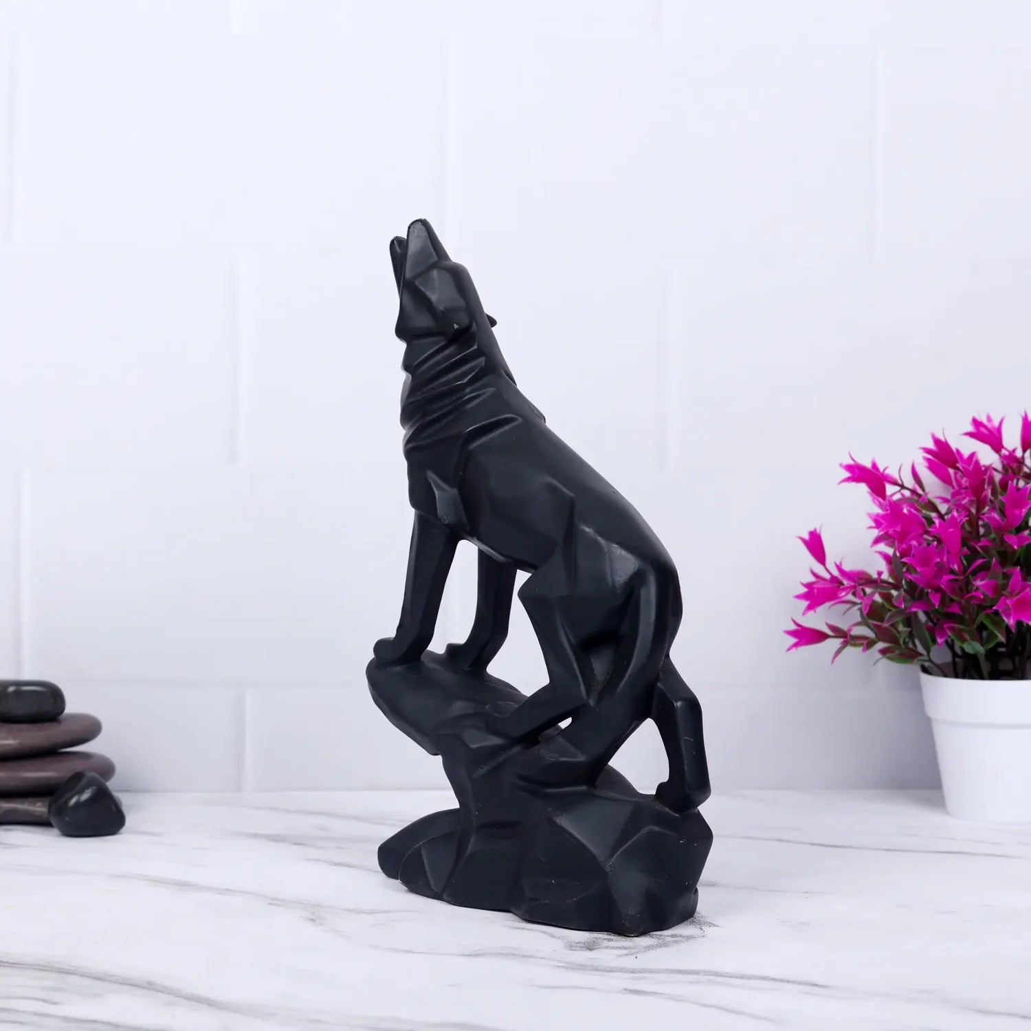 Display Royalty in masterclass with this awesome sculpture of a wolf that represents power and prowess mingled into class and perfection. Standing on a raised rock-like structure, it is a perfect item for mantlepiece, office table, or simply a dedicated table in the living room. Choose it for gifting a friend or family and let them experience your higher level of taste.