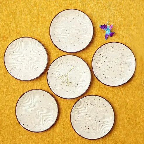 Handcrafted Ceramic Cream Matte Finish Snack/Quarter Plates Set of 6