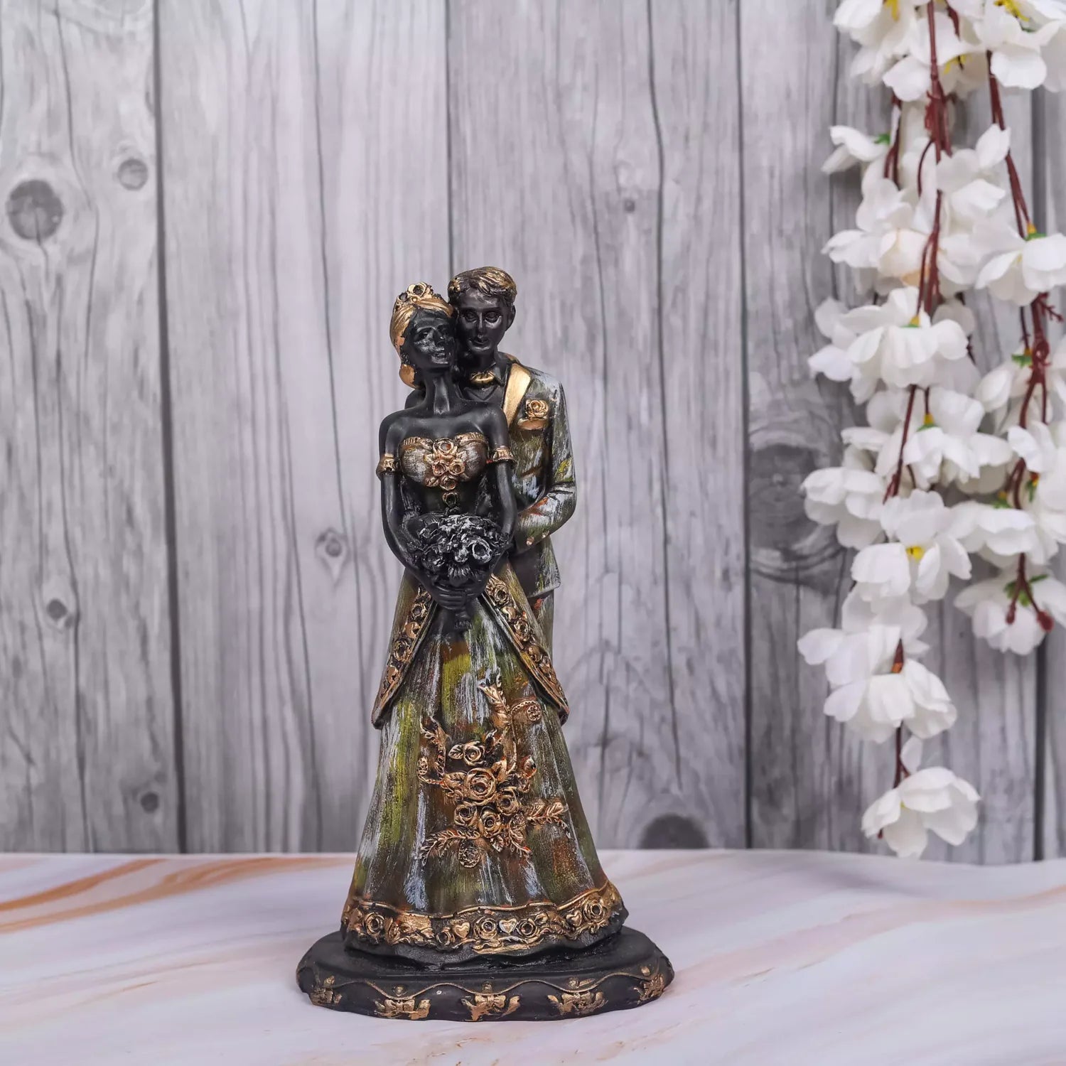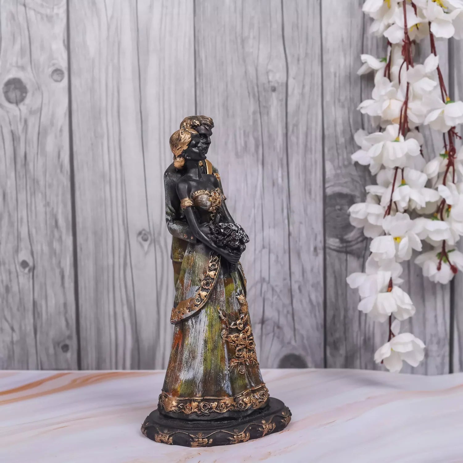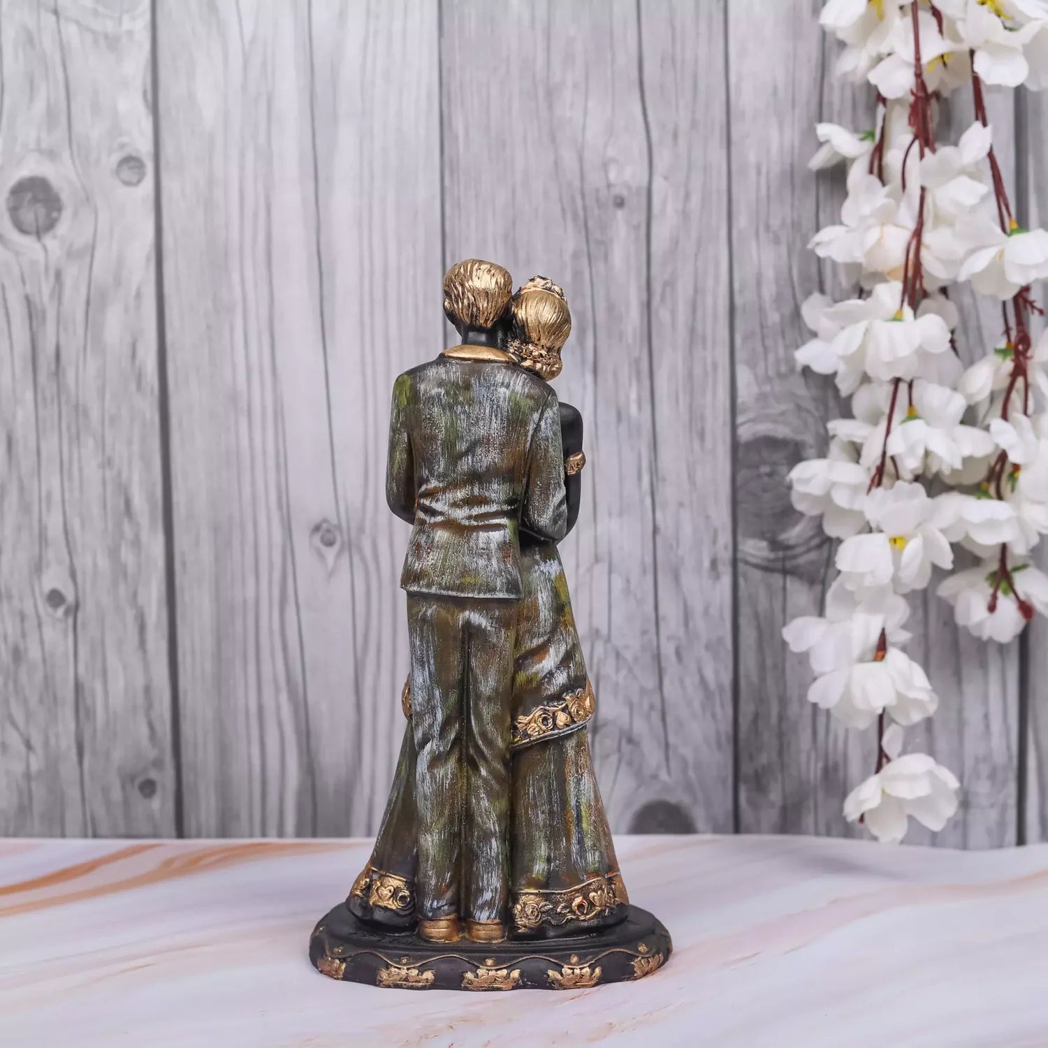 Elevate the romance in your space with our Hug Couple featuring a Girl with a Bouquet Resin Statue, a handcrafted masterpiece that radiates love and emotional resonance. Meticulously created, this resin sculpture captures the essence of a heartfelt embrace, making it an ideal addition to your decor. Crafted with precision and care, our Couple Statue is a symbol of timeless beauty and artistic expression. The girl with a bouquet adds a charming and emotional touch, making it an ideal centerpiece for bedrooms, living rooms, or any space where love is celebrated. Whether you're looking for a romantic gift or a statement piece for your decor, this handcrafted resin sculpture is sure to captivate. Let the Hug Couple with a Girl and a Bouquet Resin Statue be a visual representation of the warmth and tenderness that defines your personal style, creating a heartwarming atmosphere in your living space.