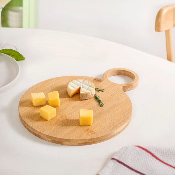 Mod Round Bamboo Serving Platter With Handle 12 Inch
