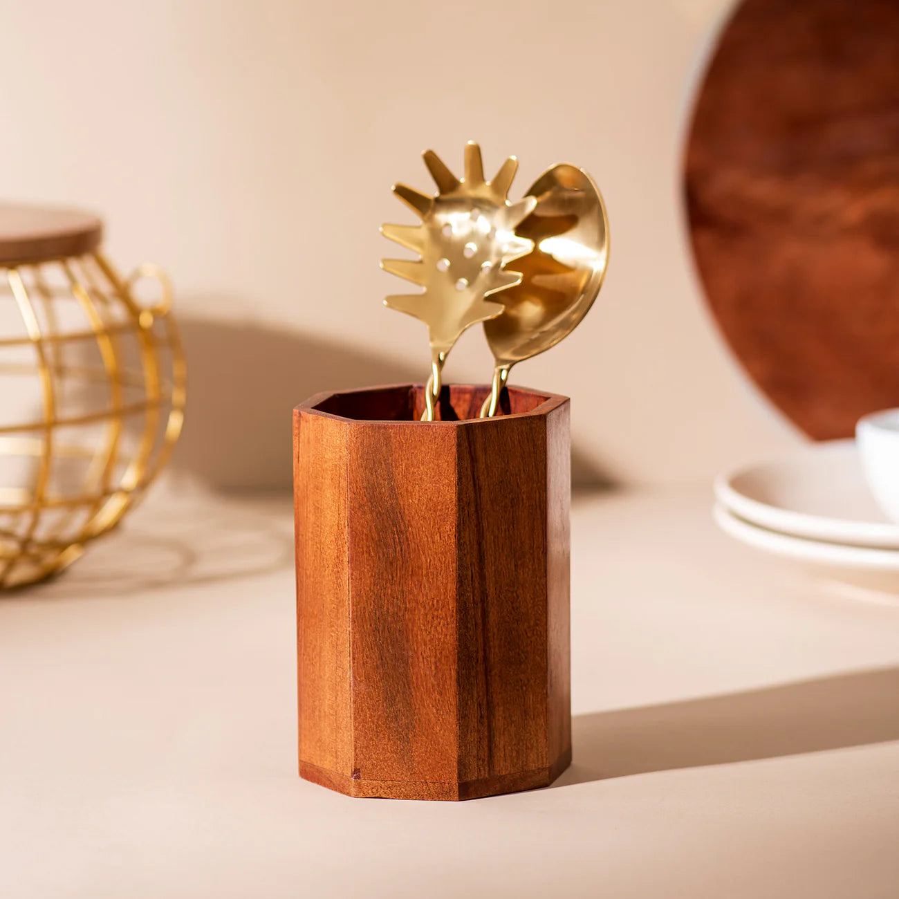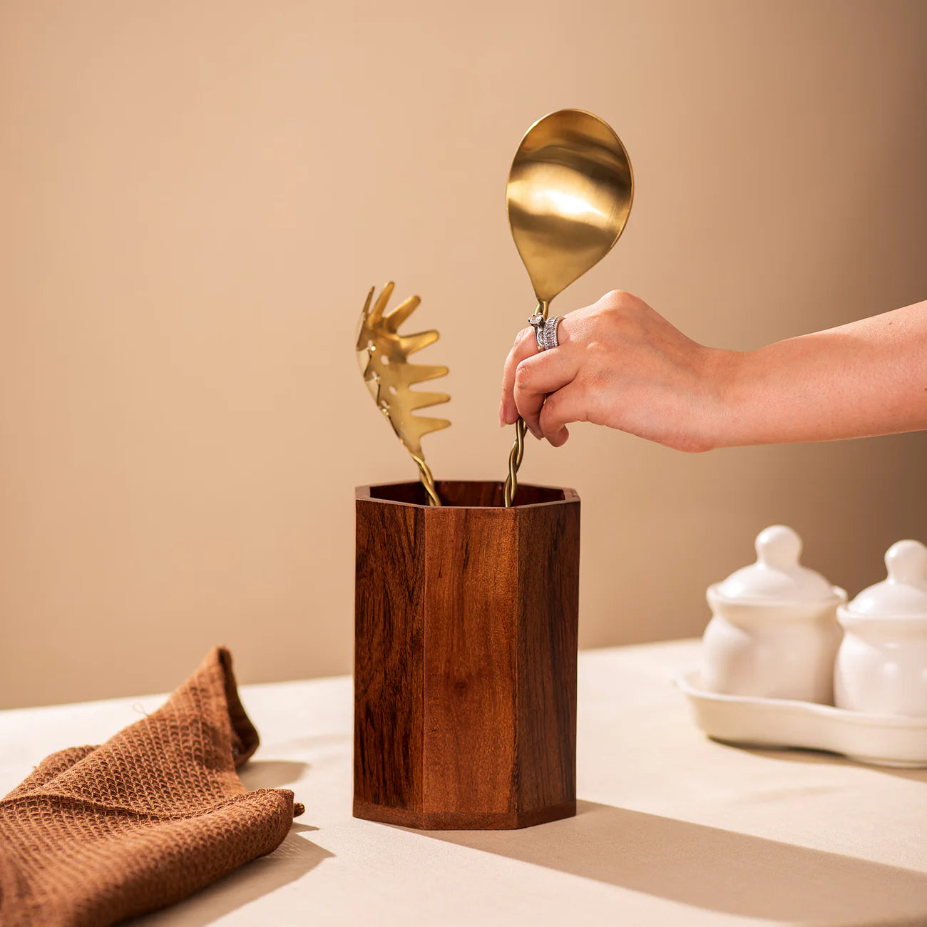 Add a touch of elegance and organization to your dining space with our handcrafted Wooden Cutlery Holder. Made from premium quality wood, this holder is designed to keep your spoons, forks, and knives neatly arranged while adding a rustic yet modern charm to your table. Its durable build ensures long-lasting use, while the smooth finish enhances the natural grain of the wood. Perfect for everyday meals or special gatherings, it helps keep your cutlery accessible and your dining area clutter-free. A versatile accessory, it can also be used to store straws, napkins, or kitchen tools with style.