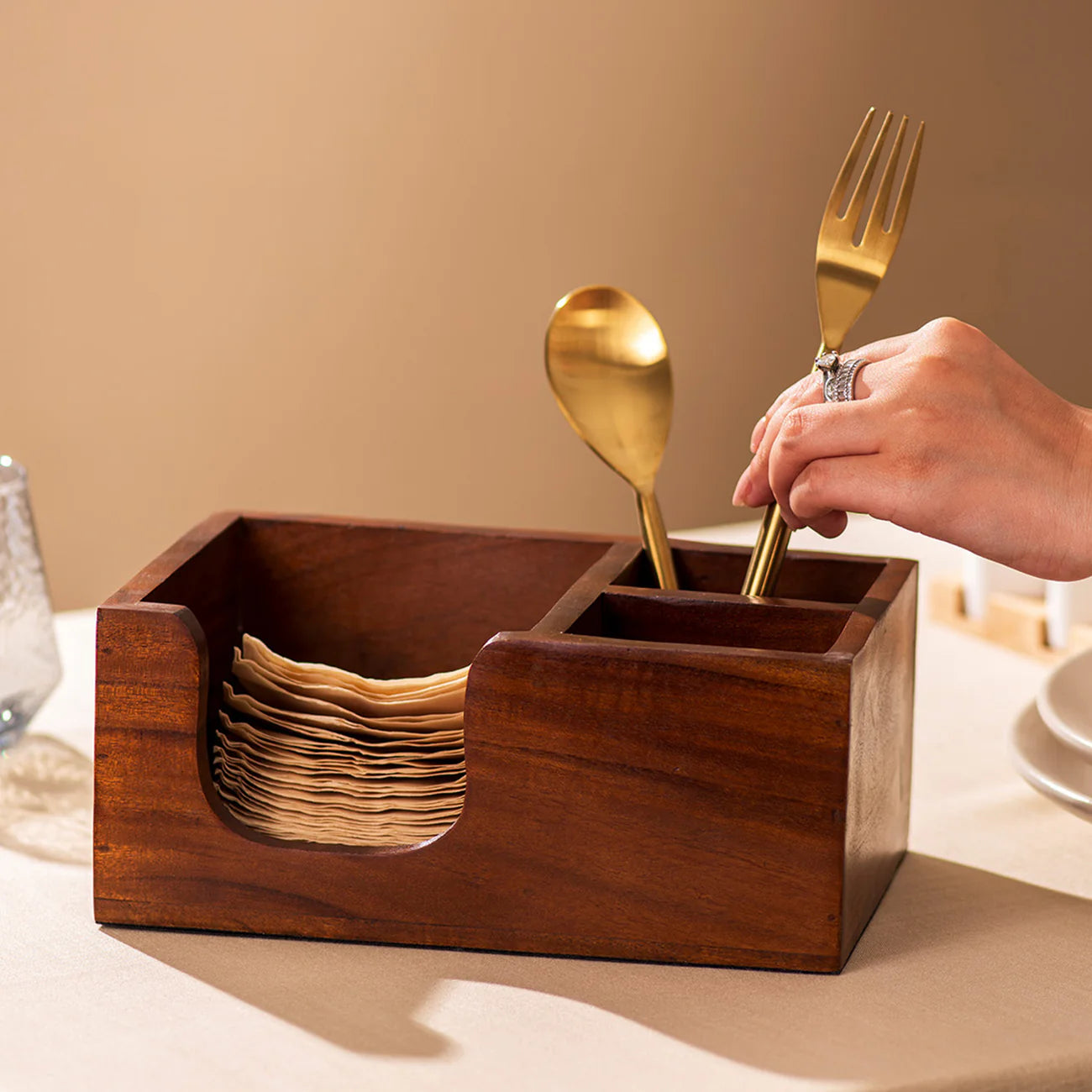 Add a touch of elegance and organization to your dining space with our handcrafted Wooden Cutlery Holder. Made from premium quality wood, this holder is designed to keep your spoons, forks, and knives neatly arranged while adding a rustic yet modern charm to your table. Its durable build ensures long-lasting use, while the smooth finish enhances the natural grain of the wood. Perfect for everyday meals or special gatherings, it helps keep your cutlery accessible and your dining area clutter-free. A versatile accessory, it can also be used to store straws, napkins, or kitchen tools with style.