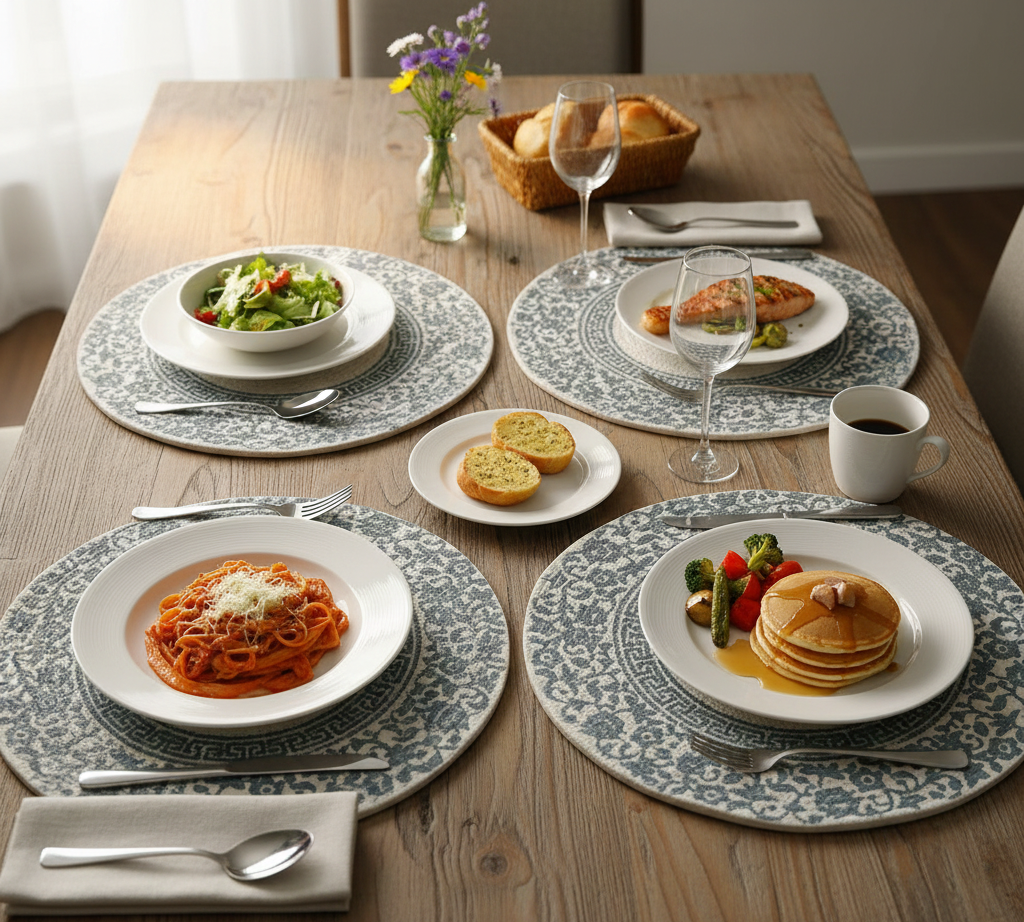 Elevate your dining experience with our beautifully handwoven cotton tablemats/ Placemats. Crafted by skilled artisans, each piece reflects timeless craftsmanship and natural charm. Made from 100% pure cotton, these mats are soft, durable, and eco-friendly, making them perfect for everyday meals or special gatherings. Their elegant texture and minimalist design add a touch of sophistication to any table setting, while protecting your surfaces from heat and spills. Easy to maintain and versatile in style, our handwoven cotton mats are a sustainable choice that blends functionality with aesthetic appeal.