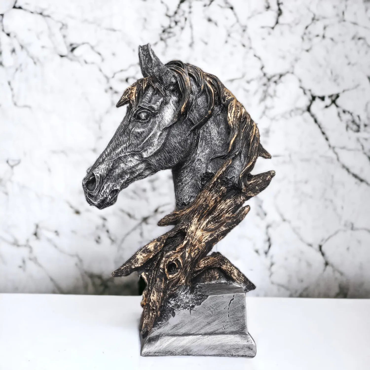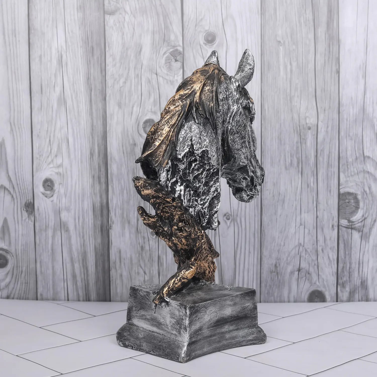 Silver Horse Head Resin Sculpture