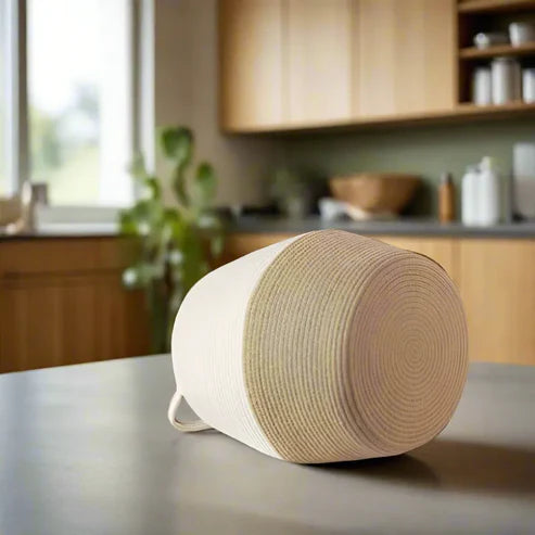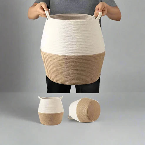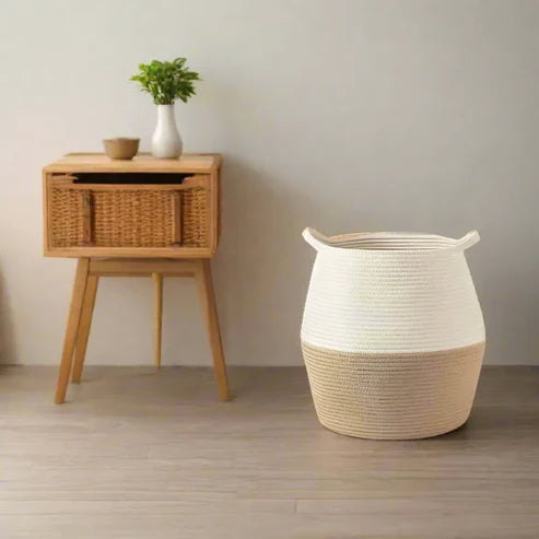 - Enhance your home with our white and Blue Cotton Rope Basket - combining practicality with a contemporary aesthetic!