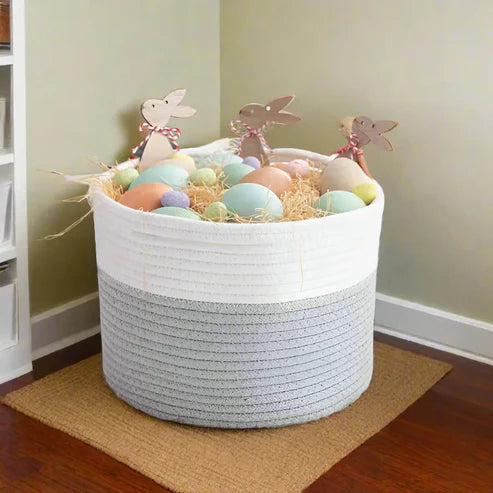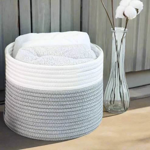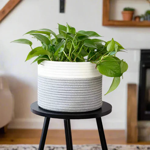 White & Grey Cotton Planter & Storage Basket - Multiple Sizes