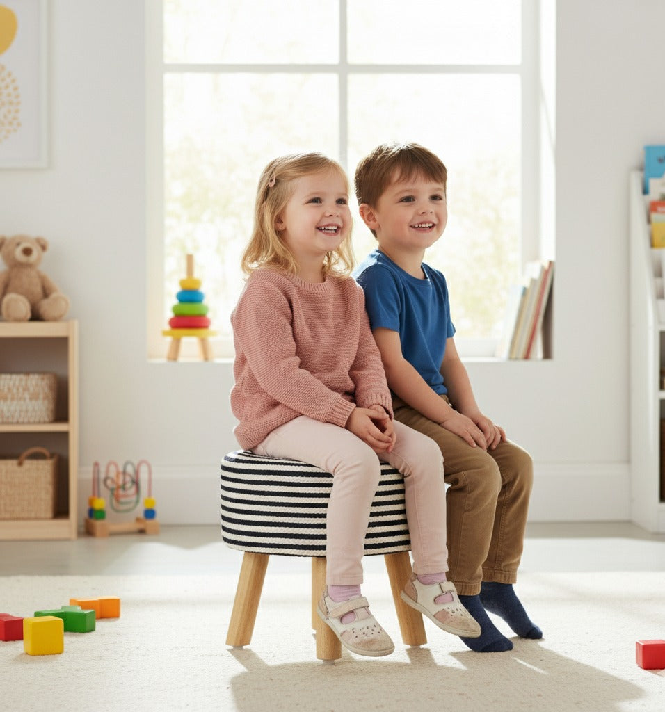 White & Black Cotton Ottoman , Decorative Stools - Multiple Sizes