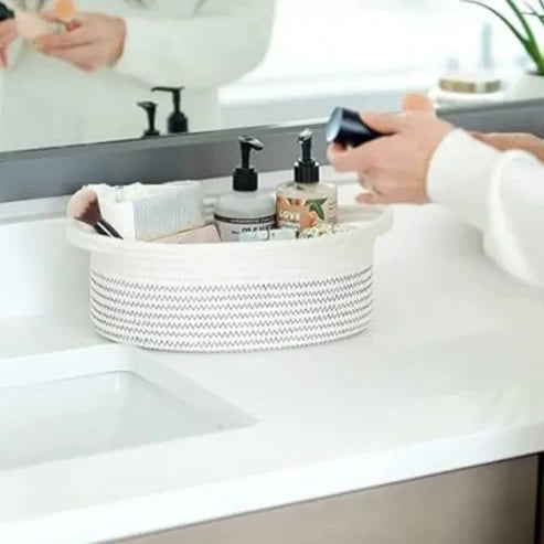 White & Black Cotton Rope Organizer - Multiple Sizes