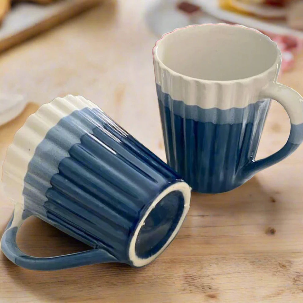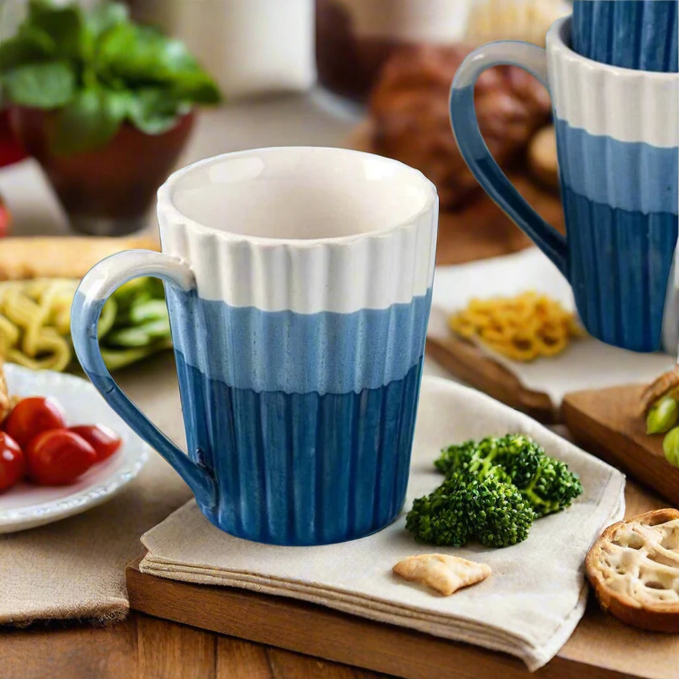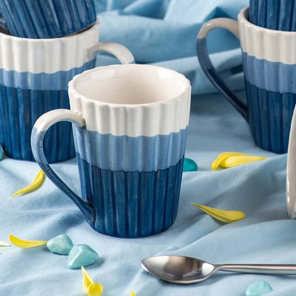 White & Blue Triple Shade Ceramic Mug - 300 ml