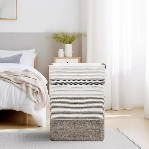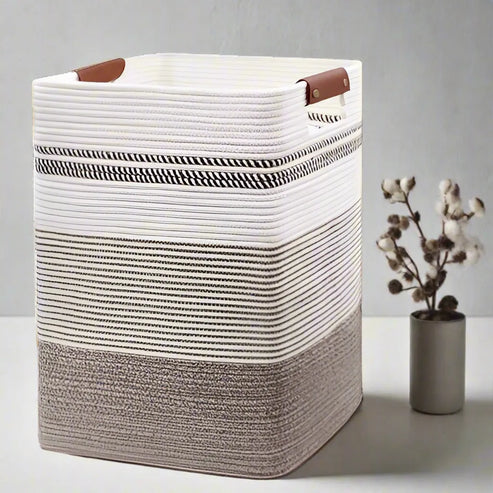 - Enhance your home with our white and brown Cotton Rope Basket - combining practicality with a contemporary aesthetic!
