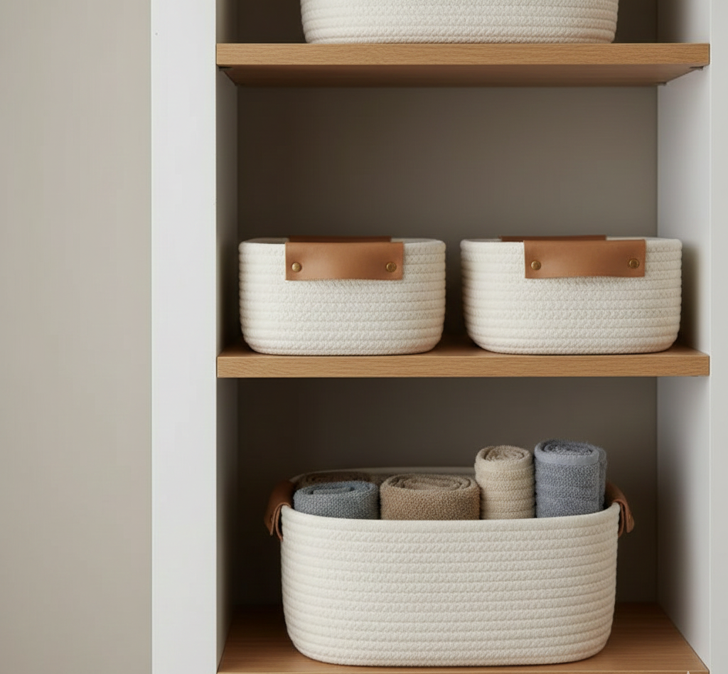 Upgrade your home organization with Virenza’s premium Cotton Shelf Baskets, thoughtfully designed to blend elegance with everyday practicality. Handcrafted with high-quality cotton rope, these baskets add a warm, minimal aesthetic to any room—whether placed on shelves, inside wardrobes, in the kitchen, or on display in your living spaces.