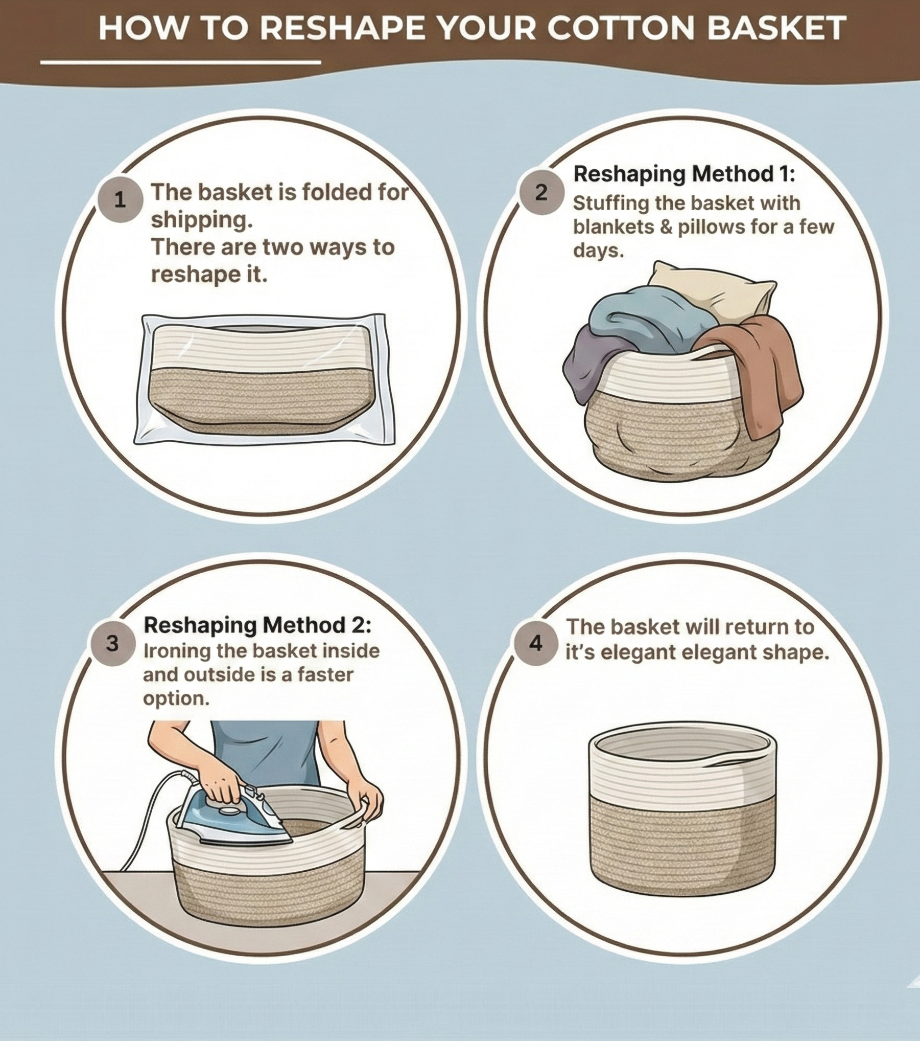 • To Reshape: Fill basket tightly for a few days, or iron gently.