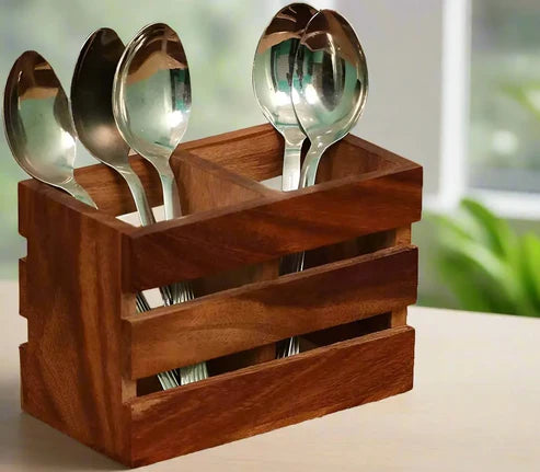 Add a touch of elegance and organization to your dining space with our handcrafted Wooden Cutlery Holder. Made from premium quality wood, this holder is designed to keep your spoons, forks, and knives neatly arranged while adding a rustic yet modern charm to your table. Its durable build ensures long-lasting use, while the smooth finish enhances the natural grain of the wood. Perfect for everyday meals or special gatherings, it helps keep your cutlery accessible and your dining area clutter-free. A versatile accessory, it can also be used to store straws, napkins, or kitchen tools with style.