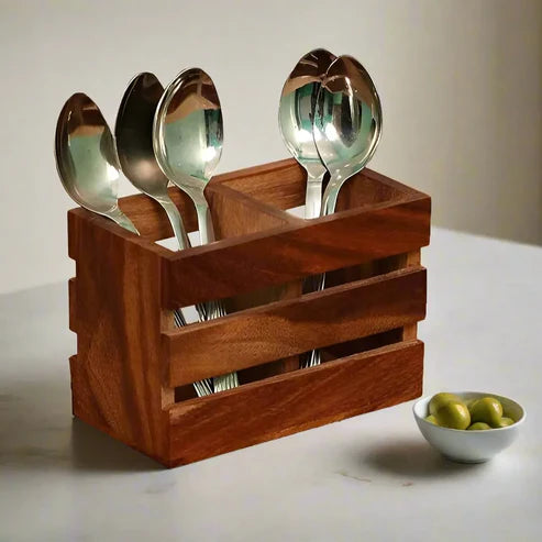 Wooden Cutlery Stand - 8 inch x 6 inch x 3 inch
