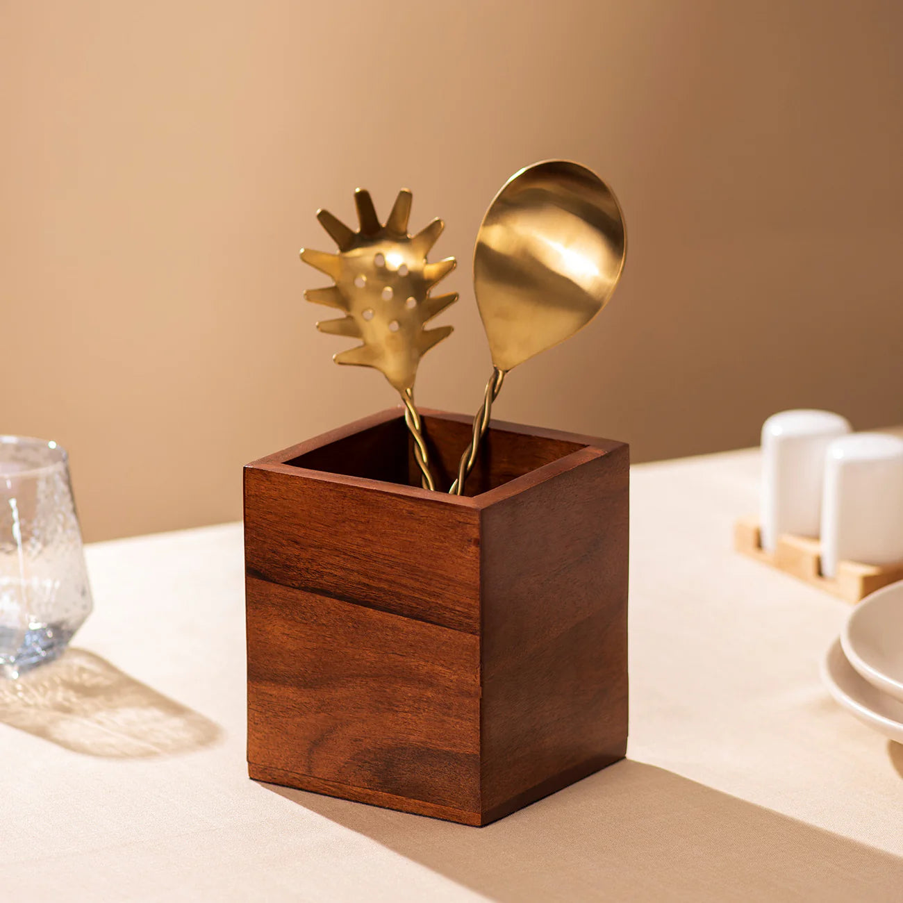 Add a touch of elegance and organization to your dining space with our handcrafted Wooden Cutlery Holder. Made from premium quality wood, this holder is designed to keep your spoons, forks, and knives neatly arranged while adding a rustic yet modern charm to your table. Its durable build ensures long-lasting use, while the smooth finish enhances the natural grain of the wood. Perfect for everyday meals or special gatherings, it helps keep your cutlery accessible and your dining area clutter-free. A versatile accessory, it can also be used to store straws, napkins, or kitchen tools with style.